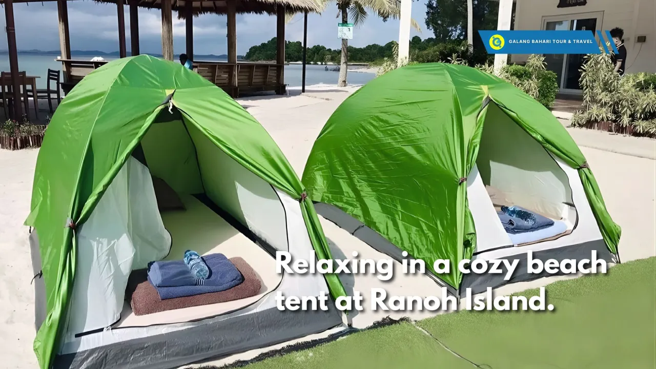 Ranoh Island Small Tent menawarkan pengalaman camping sederhana di pulau tropis dengan pemandangan pantai berpasir putih dan laut yang jernih. Tenda ini nyaman dan cocok untuk wisatawan yang ingin menikmati suasana alam Ranoh Island dengan pengalaman menginap yang santai dan dekat dengan pantai. Ideal untuk liburan singkat bersama teman atau pasangan.